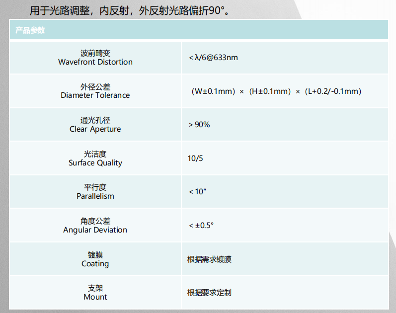 反射棱镜在光学零部件中起着重要的作用,如转动光轴、转向、反转等。由于反射镜的全反射几乎没有能量损失,且不易变形,易于调整。所以在光学仪器中,常采用直角反射棱镜来代替平面反射镜。
